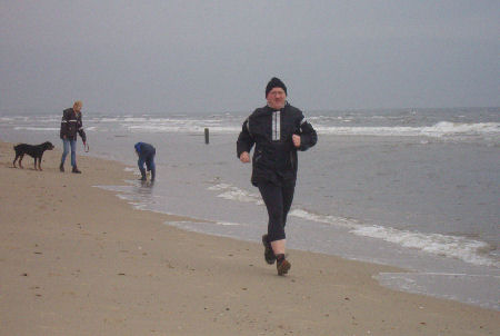 (wie auf dem Foto zu sehen bei windigem Wetter am Strand) bei Regen oder Schnee, Wolkenbruch oder Sonnenschein – die Laufschuhe